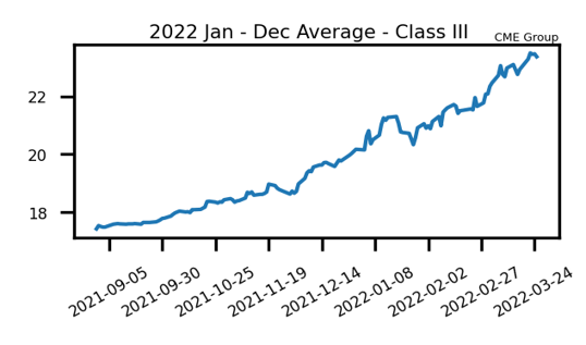 Class III milk futures saw prices trade down on Friday, with the April contract falling 20 cents to $24.30, but was still 87 cents higher for the week. The calendar year average hit a new high at $23.67 on Tuesday this week and settled at $23.34 by Friday’s close. Milk prices remain at historically great levels and this week’s February Milk Production report helped, showing a 1.00% drop year-over-year. Cow numbers did see their first month-over-month increase since May 2021, so that will be a trend to watch in coming months. Spot cheese was a big winner this week, closing at $2.2625/lb, which was up 18.25 cents overall and is sitting just beneath the 2019 high of $2.26875/lb. Demand remains strong, but prices have hit levels that are traditionally short-lived, so it is worthwhile being on the defensive.
