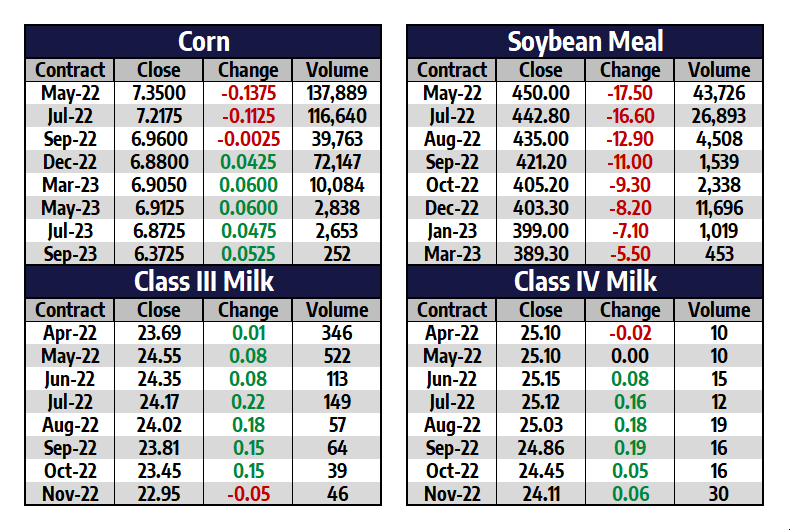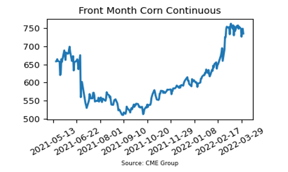 In Thursday’s USDA Prospective Plantings report, the USDA projected a large shift in acreage for 2022 from corn to beans. The USDA pegged 2022 corn acres to be planted at 89.50 million acres. This compares to 93.40 million acres last year and would be the lowest planted corn acreage total since 2018. The release of this date will keep support beneath the corn market for weeks to come. During this week’s trade, front month corn was down 19c but remains priced up at $7.35 per bushel. On the other hand, the fact that the USDA pegged March 1 corn stocks at 7.850 bb, may keep some pressure on prices. This is viewed as neutral and was right in line with market expectations. The 7 day forecast in the US calls for broad precipitation over the eastern part of the corn belt. The western areas should be drier. Brazil’s safrinha corn has a chance for rain this weekend.