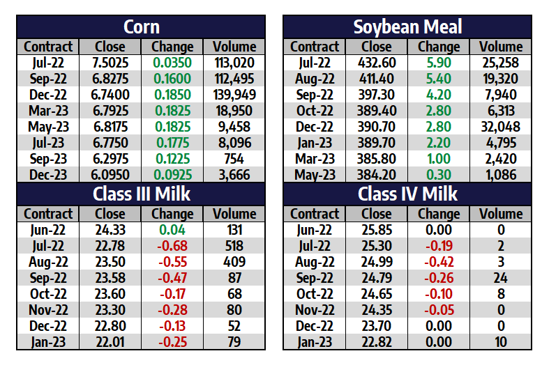 On Thursday the USDA reported that total natural cheese in refrigerated warehouses as of May 31st totaled 1.512 billion pounds – which is a new record. This was up 2% from April and was up 4% from the same month last year. This put a bearish tone back into the market because even though milk production across the country is down year-over-year, cheese inventories are still building. The rising inventory levels could be a detriment to current cheese prices that still hold up at an elevated price of $2.11875/lb. Additionally, if the recession talks pan out, cheese demand would likely begin to weaken. The US cheese trade saw sellers offer blocks 1c lower and offer barrels 2.25c lower in response to the USDA report. The drop in cheese along with the fact that the US butter price fell 4c to $2.9150/lb kept pressure on milk futures on Friday.