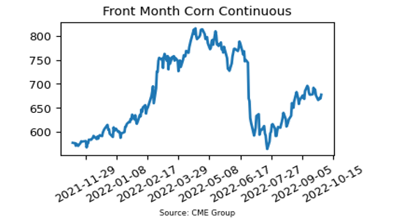 - December corn futures closed the week 0.75 cents higher at $6.7750 within a 34.75 cent range