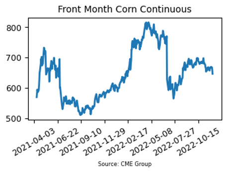 - 448.9 million bushels of corn were used for ethanol production in October, down 4.1% from October of 2021